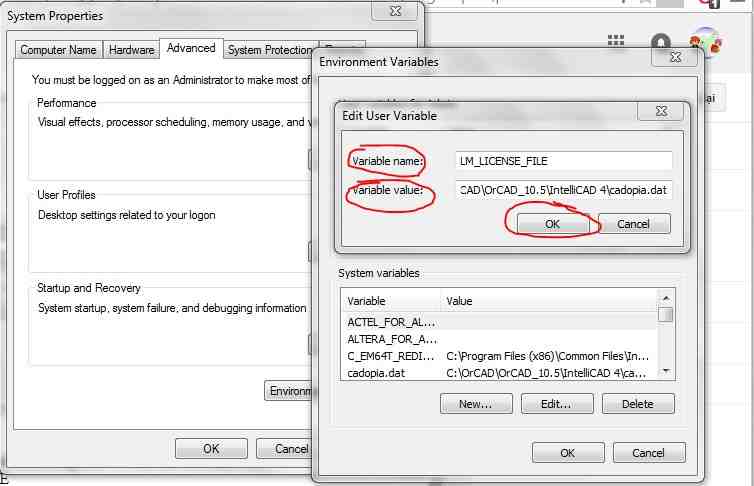 6. Dòng New.. phía dưới tương tự, nhưng chỉ khác dòng Variable value là sửa lại cadopia.dat