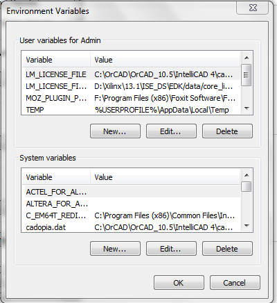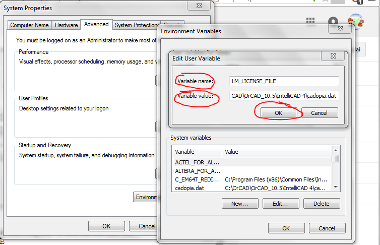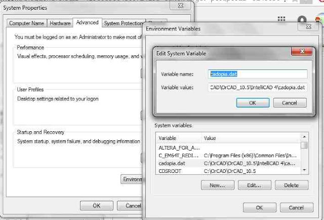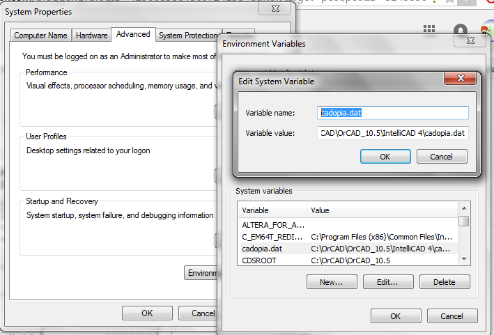 - Variable value: C:\OrCAD\OrCAD_10.5\IntelliCAD 4\cadopia.dat