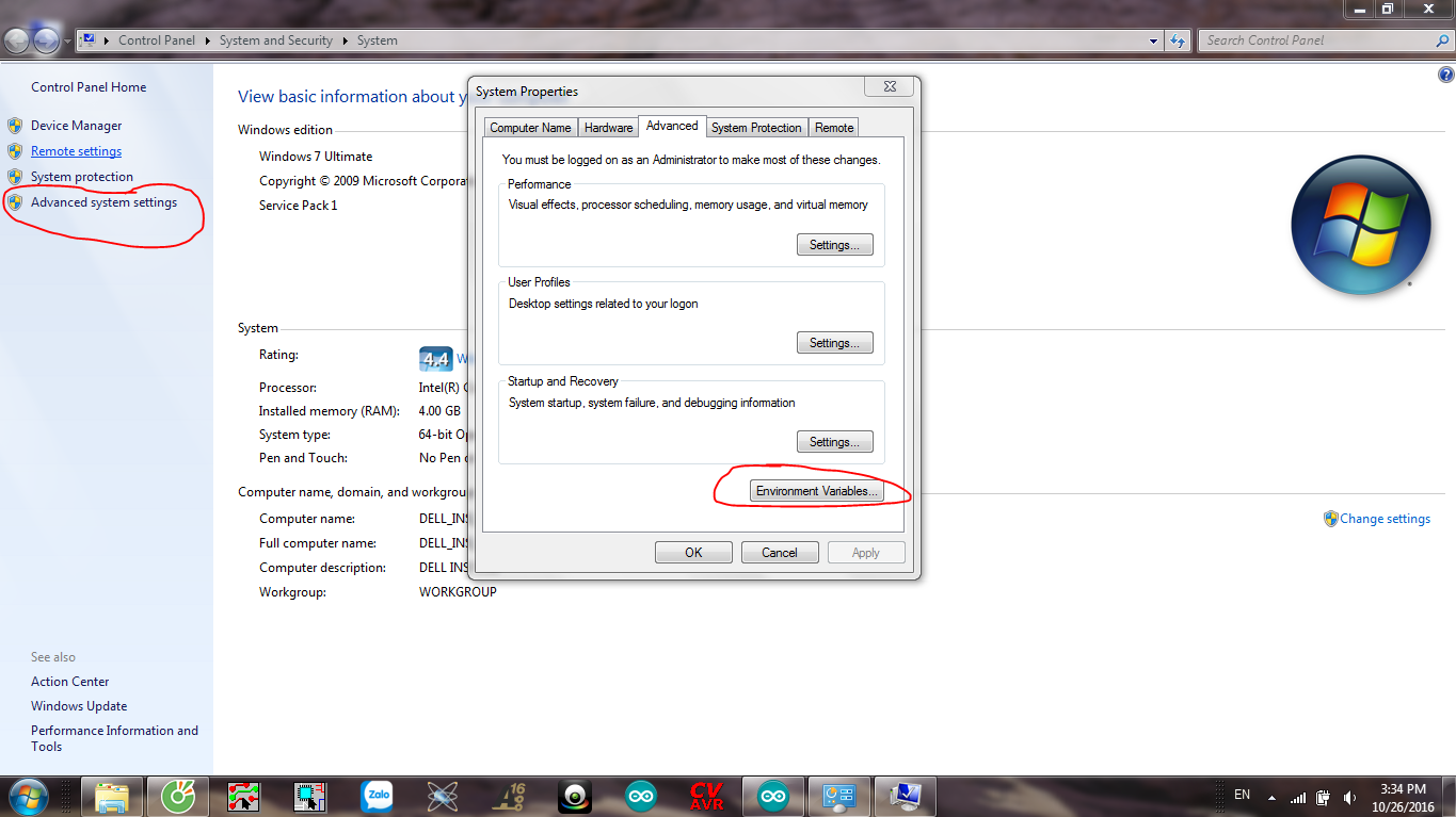 4. Sau khi chọn Enviroment Variables. thì xuất hiện bảng sau: