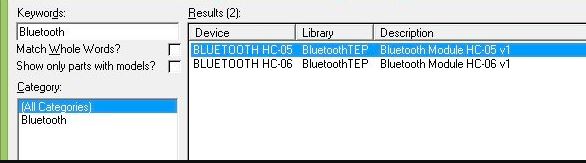 Bây giờ hãy mở phần mềm Proteus của bạn hoặc khởi động lại nó nếu nó đã mở và tìm kiếm Bluetooth và bạn sẽ thấy như hình dưới: