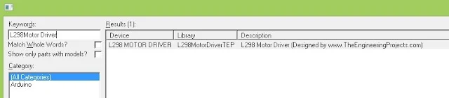 - Tiếp đến trong danh sách thư viện, hãy tìm kiếm L298 và bạn sẽ thấy được L298 Motor Driver: